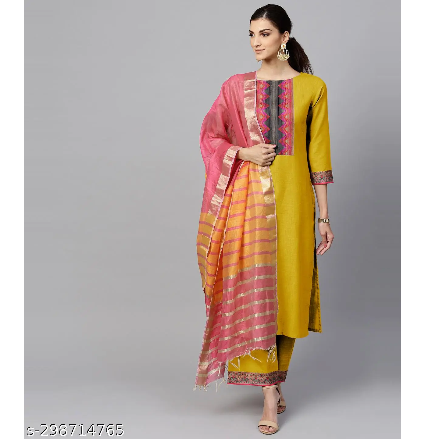 Exclusive yellow embroidered royan slab straight kurta dupatta set for women, this Kurta pant is made up of 100% good material and available in multicolor shrugs,...
